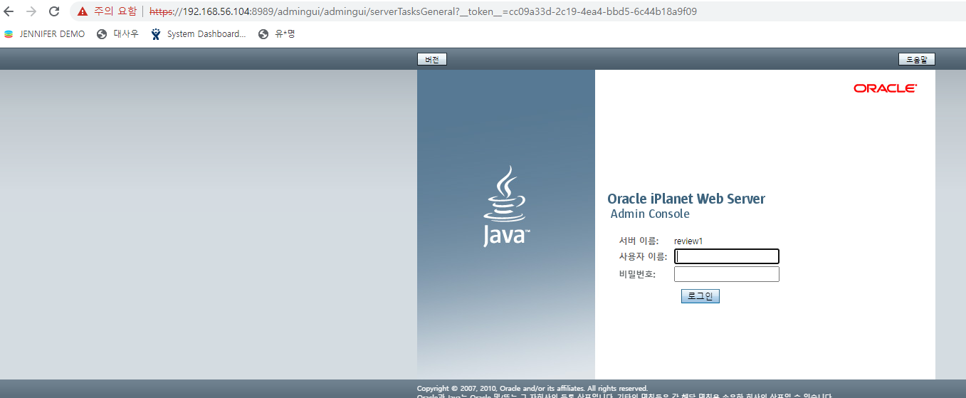 클라이언트에서 접속 시 해당하는 "리눅스IP주소:8989"로 접속할 것14. {iPlanet_HOME} 경로로 이동